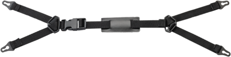 It is made of durable textile strap and is equipped with a quick-release buckle and a 4-point suspension system.