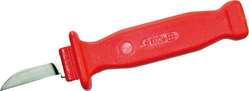 The VDE GS 1000 V phase stripping knifes is a high-quality tool made in Germany. It features a 50 mm long blade with a narrow, straight cutting edge for precise work. The ergonomically shaped safety handle is made of tough, impact-resistant plastic with an integrated soft zone.